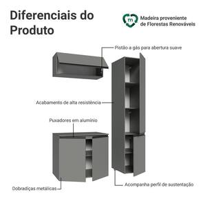 Produzido com materiais de qualidade, possui dobradiças metálicas nas portas e puxadores em perfil de alumínio, garantindo resistência. A porta basculante possui pistão, que a mantém suspensa enquanto está aberta, oferecendo mais conforto e no uso e o acabamento é de alta resistência, garantindo durabilidade.