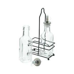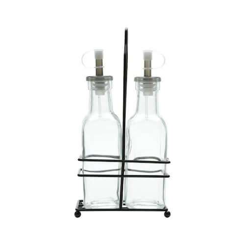 Versatilidade: Contém uma garrafa para vinagre e outra para azeite de 200ml cada, além de um suporte prático para mantê-las organizadas e ao alcance das mãos.