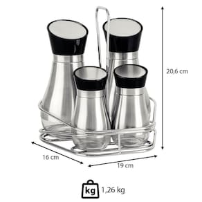 - Com este conjunto completo, ficou mais simples do que nunca ter seus condimentos favoritos à mão durante as refeições, tornando sua rotina à mesa agradável e satisfatória!