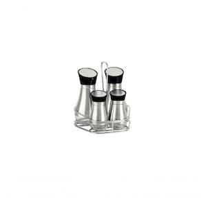 Realce o sabor dos seus pratos favoritos com o Conjunto Galheteiro Tramontina Realce, tornando a composição da sua mesa mais prática e elegante. Este conjunto é perfeito para armazenar os condimentos essenciais de forma organizada e sofisticada. Com quatro galheteiros especialmente projetados para azeite, vinagre, sal e pimenta, o conjunto é feito de vidro com revestimento em aço inox e tampas em ABS de alta vedação em silicone, garantindo durabilidade e preservação dos condimentos. O suporte possui uma estrutura aramada em aço carbono cromado, adicionando um toque moderno que combina com qualquer estilo de decoração. Com este conjunto completo, ter seus condimentos favoritos à mão durante as refeições nunca foi tão fácil, tornando sua experiência à mesa ainda mais agradável e satisfatória!