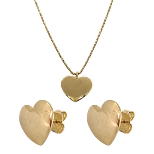 Conjunto Gargantilha Folheada A Ouro Ping. Coração 45Cm E Brinco Coração Semijoia De Luxo Especificações do produto Comprimento corrente 45cm + 5cm extensor Malha da corrente veneziana 13 mm Fecho bóia Altura pingente 13mm Peso conjunto 2,9g Brinco Diâmetro 13mm Haste 1cm Peso 1,65g Descrição do produto Gargantilha banhada a ouro 18k conjunto pingente coração 45cm com extensor Belíssimo kit de semijoia composto por um colar com malha veneziana pingente e brinco formato coração. A malha do colar é muito confortável, não enrosca no cabelo e possui um ótimo caimento no busto. Já o pingente e o brinco possuem o tamanho ideal para que você tenha discrição e elegância. Esse kit é perfeito para o dia a dia e excelente ocasiões especiais. Valorize ainda mais sua beleza com nossas semijoias Não perca essa oportunidade. Nós da butique da beleza temos as peças mais exclusivas para os clientes mais exigentes. O que oferecemos Um banho de ouro 18k, com qualidade , cor e tonalidade idênticas ao de uma peça de ouro 18k. Vendemos a experiência de você poder usar um produto arrojado, se sentir bela o e elevar sua autoestima. Embalagem Caixa veludo de luxo foto do anúncio para você guardar sua semijoia e mantê-la brilhante por muito tempo. É bijuteria ou semijoia Todas nossas peças são semijoias, ou seja a deposição de ouro sobre o metal pode ser até 250 vezes maior que a quantidade de ouro 18k depositada em uma peça de bijuteria. Portanto o que nós oferecemos é qualidade. É banhado ou folheado a ouro Os dois termos significam a mesma coisa, referem-se ao processo de galvanoplastia onde o metal, nesse caso o ouro , é adicionado a peça, conferindo proteção, brilho e cor, sendo estas, as características gerais de uma semijoia de qualidade. As semijoias dão alergia Não, nossos produtos são níquel free, cádmio free e Cinza free, todos esses compostos químicos são alérgicos e estão fora de nosso processo de produção. Tem Sim , 6 meses mediante apresentação do certificado de Marca: Não Informado Ean: 7893692915195
