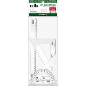 Principais características: - Conjunto para desenho 1 grau - 5 peças de alta qualidade - Produzido em polipropileno resistente - Régua de 30cm para linhas retas - Transferidor de 180º para medir ângulos - Esquadro de 45º e 60º para formas geométricas - Embalagem unitária - Referência: 8730.H.0200