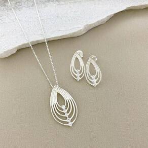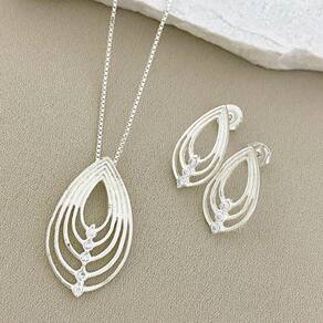 Conjunto Gota com detalhes de Zircônia em Prata 925