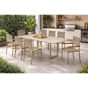 Com design contemporâneo e acabamento elegante, o conjunto combina estrutura metálica robusta com assento e encosto com malha náutica, criando um visual moderno e atemporal. A proposta náutica traz leveza ao ambiente, valorizando espaços como varandas gourmet, áreas de lazer e salas de jantar integradas.