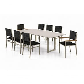 Com design contemporâneo e acabamento elegante, o conjunto combina estrutura metálica robusta com assento e encosto com malha náutica, criando um visual moderno e atemporal. A proposta náutica traz leveza ao ambiente, valorizando espaços como varandas gourmet, áreas de lazer e salas de jantar integradas.