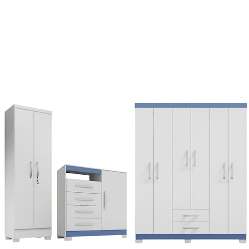 Para transformar seu quarto em um ambiente prático, elegante e extremamente organizado, o Conjunto com Guarda Roupa 6 Portas e 2 Gavetas, Cômoda e Armário Multiuso 2 Portas com Chave é a escolha perfeita. Pensado para oferecer o máximo aproveitamento de espaço sem comprometer o estilo, esse conjunto oferece funcionalidade e beleza em cada detalhe. O guarda-roupa possui amplo espaço interno, com portas de giro, duas gavetas com corrediças telescópicas e cabideiros em madeira, ideais para acomodar suas roupas com praticidade.