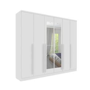 1x Guarda Roupa Casal 6 Portas 8 Gavetas Puxador MDF 270cm com Espelho Portugal Neve