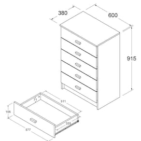 A cômoda de 5 gavetas é fácil de montar e versátil. Suas gavetas são perfeitas para organizar pequenos e médios objetos, e o design é inspirado no estilo escandinavo, adicionando um toque de elegância ao seu espaço.