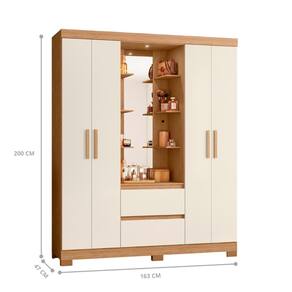 O guarda roupa dispõe nove prateleiras para organizar travesseiros, cobertores, toalhas e objetos.