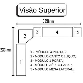 4 - Módulo aéreo casal: 230 (A) x 165 (L) x 52 (C) cm;