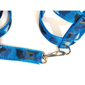 Peitoral de nylon 25 mm xadrez azul com fivela de metal; Guia de nylon 25 mm xadrez; Mosquetão com trava de segurança; Cor azul. Tamanho: nº 3. Praticidade, conforme para seu pet de pequeno a médio porte. Passei com estilo e elegância. Medidas aproximadas: Pescoço 43 cm Tórax 42 à 48 cm. Guia 90 cm. Marca: Nica pet