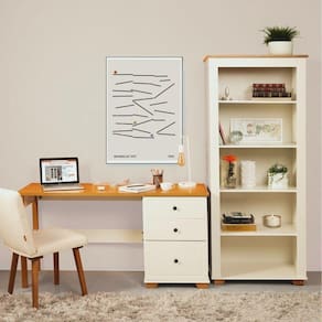 1x Estante para Livros 4 Prateleiras Ananda Off White/Mel Largura: 78 cm Altura: 178,2 cm Peso: 38,3 kg Profundidade: 41,2 cm Necessita Montagem: Sim