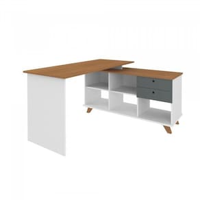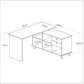 1x Escrivaninha em L Retrô 2 Gavetas 5 Nichos 145x128cm Gold Freijó/Grafito/Branco Altura: 75 cm Peso: 49 kg Profundidade: 60 cm Necessita Montagem: Sim