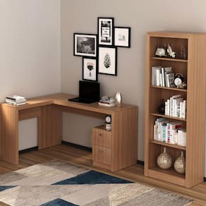 O conjunto Home Office Tecno Mobili possui 2 peças, sendo 1 escrivaninha e 1 estante com as seguintes medidas: Medidas Estante 4 Prateleiras ME4104: Altura 171,5cm, Largura 60cm, Profundidade 31,5cm Medidas Escrivaninha ME4129: Altura 74,5cm, Largura 135,8cm, Profundidade 113cm Os produtos Tecno Mobili são feitos em MDP, material muito forte e de alta durabilidade, garantindo aos produtos excelente estabilidade e resistência. Possui revestimento melamínico em baixa pressão, também conhecido como BP, que é um acabamento que faz com que o produto tenha maior resistência e durabilidade, ou seja, não descasca, é mais resistente a riscos e possui maior resistência à umidade. Acabamento: BP Altura do Conjunto: 74,5 cm Ambiente: Escritório Material Principal: MDP Possui Portas: Não Possui Rodízio: Não