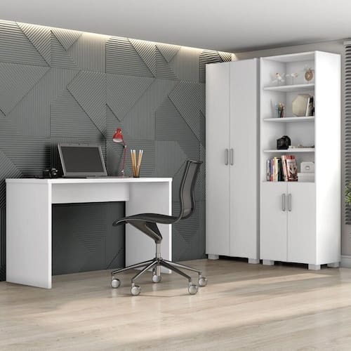 Versátil, adapta-se a diversos ambientes, seja como uma estante para livros em um escritório ou para otimizar o espaço em uma área de serviços. Construído com materiais de qualidade, possui estrutura resistente de 15mm. Altura do Conjunto: 188 cm Ambiente: Escritório Ambiente Principal: Escritório Cor: Branco Informação Complementar: 1x Escrivaninha Gávea Office 127cm Branco White Largura: 127 Largura: 127 cm Altura: 75 Altura: 75 cm Peso: 25 kg Profundidade: 53 cm Profundidade: 53 cm Necessita Montagem: Sim Necessita Montagem: Sim