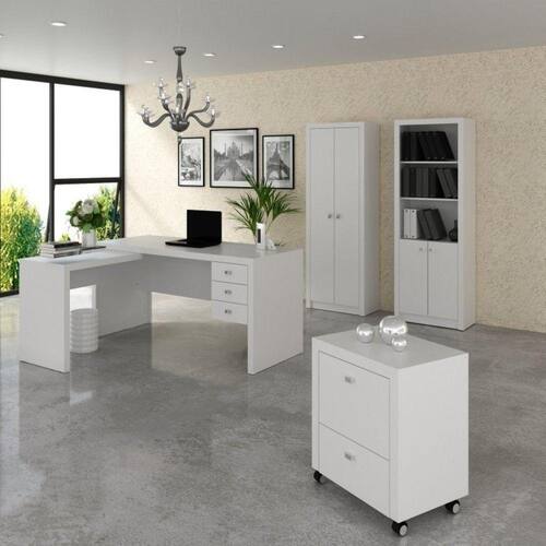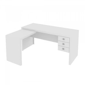 1x Mesa para Escritório em L com 3 Gavetas ME4106 Branco Largura: 154,8 cm Altura: 74,5 cm Peso: 40,5 kg Profundidade: 126,5 cm Necessita Montagem: Sim