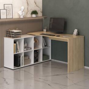 1x Escrivaninha em L com 8 Nichos Nero Carvalho/Branco Largura: 135 cm Altura: 75 cm Peso: 42,75 kg Profundidade: 60 cm Necessita Montagem: Sim