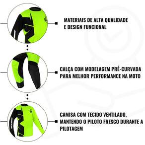 Este conjunto foi projetado para oferecer ventilação superior e design ergonômico, garantindo performance máxima e conforto durante a pilotagem.