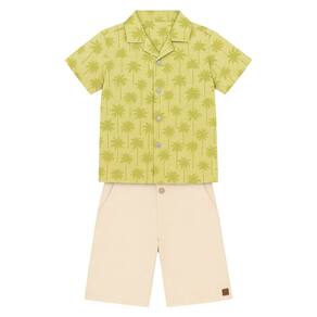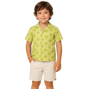 Deixe seu pequeno ainda mais estiloso neste verão com o conjunto infantil masculino composto por camisa amarelo estampada com coqueiros e shorts bege claro. A camisa de manga curta é confeccionada em tecido leve, com fechamento por botões, proporcionando conforto e frescor nos dias quentes. O shorts, feito em tecido macio, conta com cós ajustável e bolsos funcionais, garantindo praticidade e liberdade de movimento. Ideal para passeios, festas e momentos de lazer, este conjunto une estilo, conforto e qualidade.