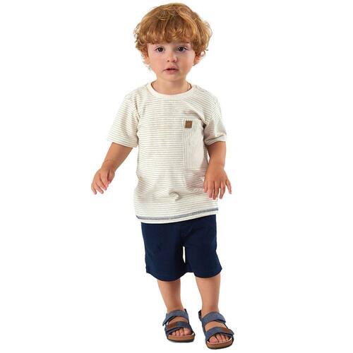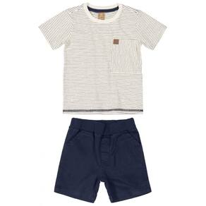 Conjunto Infantil Camiseta listrada em Malha Natural e Bermuda em Sarja com elastano Marinho Up Baby Ref. 42779