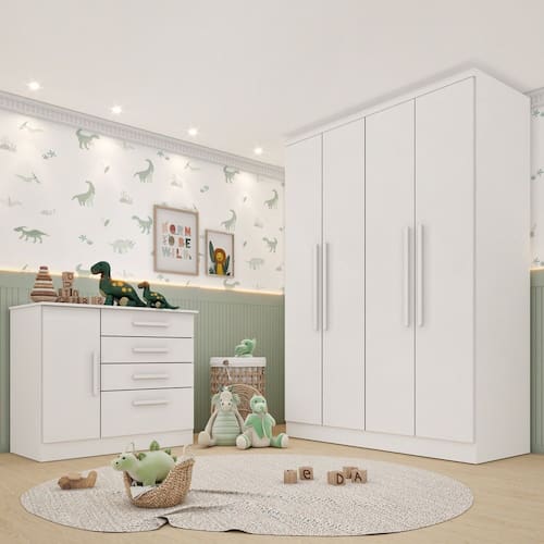 QUARTO INFANTIL COM GUARDA ROUPA CÔMODA HARMONIA: Onde a Organização Encontra a Elegância dos Sonhos!