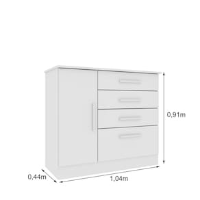 • Gavetas Suaves: Suas 4 gavetas com corrediças telescópicas proporcionam um deslizamento suave e seguro, perfeitas para organizar roupas e pertences.