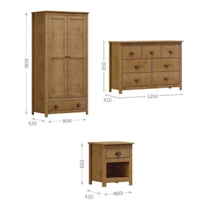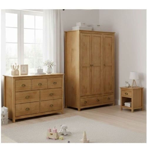 O conjunto é fabricado 100% em madeira maciça de pinus com acabamento em verniz PU/UV acetinado na cor Freijó. O guarda-roupa oferece organização para roupas e acessórios, a cômoda amplia o armazenamento com sete gavetas espaçosas, e a mesa de cabeceira complementa o ambiente com funcionalidade para o dia a dia. Um conjunto que une durabilidade, beleza natural da madeira e praticidade, ideal para deixar o quarto infantil mais organizado, charmoso e aconchegante. Possui Rodízio: Não Altura do Conjunto: 185.5 cm Ambiente: null Ambiente Principal: Quarto Infantil Cor: Freijó Informação Complementar: 1x Cômoda para Quarto 7 Gavetas Topázio 100% Madeira Maciça Freijó Largura: 125 cm Altura: 85 cm Peso: 36,3 kg Profundidade: 41 cm Necessita Montagem: Sim