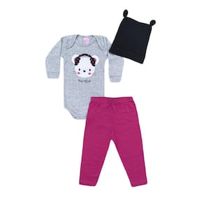 Nosso Conjunto Infantil Menina Body Mescla Gatinha + Calça Pink e Touca - Lumagy é a coisa mais fofa desse mundo! O conjunto contém 1 body mescla com estampa de gatinha, onde conta com botões de pressão entre pernas que facilitam na hora da troca; 1 calça rosa pink com poá preto super estilosa; e para completar o look, acompanha também uma touca muito linda! As cores casam entre si, fazendo o composê perfeito.