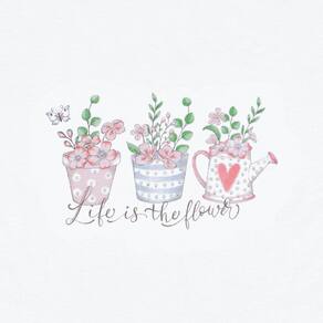 Meninas charmosas e fashionistas amam lookinhos Pulla Bulla! Composto por uma blusa meia malha na cor branca com estampa de flores com strass e escrita "vida são flores" e short em moletom linho na cor rosa pó com bolsos laterais funcionais e elastano na cintura para maior conforto ao usar a peça! Versátil para todas as ocasiões do dia a dia.