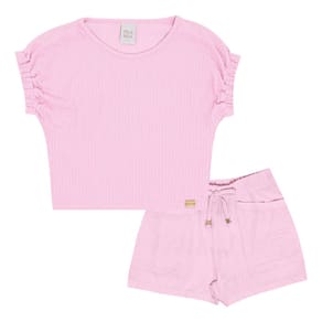 Básico e versátil para usar o conjunto ou criar novas composições para o dia a dia! Conjunto composto por blusa e short na cor chiclete em malha corrente. Short possuí bolsos frontais funcionais, elastano na cintura para maior conforto e amarração em laço com ponteiras de metal.