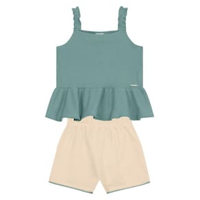 Encante-se com o conjunto infantil da Brandili, perfeito para as pequenas fashionistas! A blusa, confeccionada em ribana de cor lisa, apresenta um delicado babado na barra e nas mangas regatas, além de um elegante decote quadrado. O shorts em moletinho, com detalhes de costura e cós elástico, garante conforto e liberdade para brincar. Invista nesse look charmoso que fará sucesso em qualquer ocasião, proporcionando estilo e praticidade para as meninas!