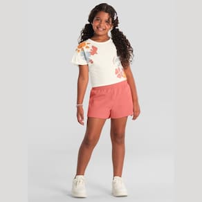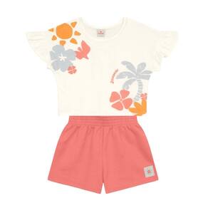Deixe sua pequena ainda mais charmosa com o conjunto infantil da Brandili. A blusa cropped em meia malha apresenta uma estampa colorida de flores, gola redonda e mangas curtas em babado, trazendo leveza e feminilidade. O shorts em moletinho tem cós elástico e aplique decorativo termocolante, garantindo conforto e estilo. Ideal para dias quentes, esse look moderno é perfeito para brincar e se divertir com muito charme.