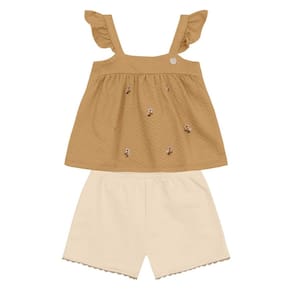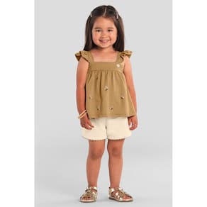 Encante-se com o conjunto infantil da Mundi, perfeito para as pequenas fashionistas! Composto por uma blusa de cotton campeche, apresenta delicados bordados de florzinha, decote quadrado e mangas com babados que garantem um toque de charme. O shorts em moletinho de cor lisa, com cós elástico, proporciona conforto e liberdade de movimento. Ideal para momentos de diversão e descobertas, esse conjunto é a escolha perfeita para vestir sua bebê com estilo e elegância!