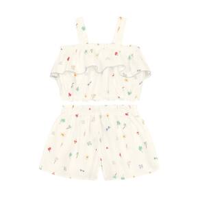 Deixe sua pequena ainda mais estilosa com o conjunto infantil da Mundi. A blusa cropped em liocel possui barra ajustada, babado e estampa de cerejas, além de alças regata que garantem frescor. O shorts com cós elástico complementa o look com a mesma estampa divertida. Ideal para dias quentes, esse conjunto une conforto e charme, permitindo que as meninas brinquem à vontade. Combine com sandálias e um chapéu para um visual perfeito de verão.