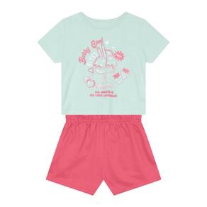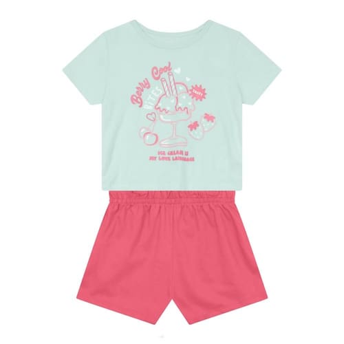 Encante sua pequena com o conjunto infantil menina composto por blusa confeccionada em malha com uma divertida estampa em gel com glitter de taça de sorvete e morangos, além de uma frase em destaque. As mangas curtas e a gola redonda garantem conforto e estilo. O shorts em moletinho leve possui cós em elástico, proporcionando liberdade de movimento. Ideal para dias de diversão, esse conjunto é perfeito para compor looks alegres e descontraídos.