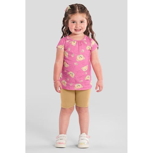 Encante-se com o adorável conjunto infantil da Brandili, perfeito para as pequenas! Composto por uma blusa em meia malha, apresenta uma divertida estampa de ursinhos e elegantes pregas na gola, garantindo um toque especial. A bermuda ciclista em cotton possui cós em elástico, proporcionando conforto e liberdade para brincar. Ideal para dias ensolarados, esse conjunto é a escolha perfeita para momentos de diversão e estilo. Combine com sapatilhas e acessórios coloridos para um look irresistível!