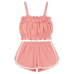 Deixe sua pequena ainda mais estilosa com o conjunto infantil da Brandili. Confeccionado em malha anarruga fio tinto, o tecido leve e texturizado traz um caimento suave e cores vibrantes. A blusa cropped com alças de regata e babados frontais adiciona um toque de charme, enquanto o shorts com cós elástico garante conforto para o dia a dia. Uma escolha perfeita para quem busca estilo e praticidade em uma única peça.