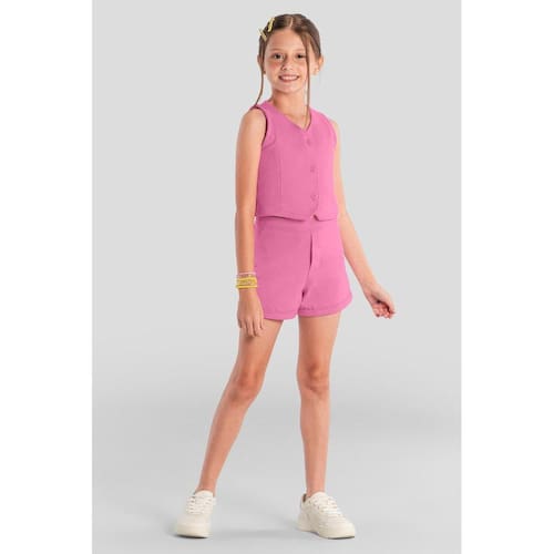 Encante sua pequena com o conjunto infantil da Brandili, perfeito para dias cheios de estilo e conforto! Confeccionado em moletinho de cor lisa, o colete apresenta abertura frontal por botões e gola V, enquanto o shorts conta com cós elástico para maior praticidade. Ideal para compor looks despojados e modernos, esse conjunto é a escolha perfeita para brincar e se divertir com liberdade. Combine com tênis e acessórios coloridos para um visual ainda mais charmoso!