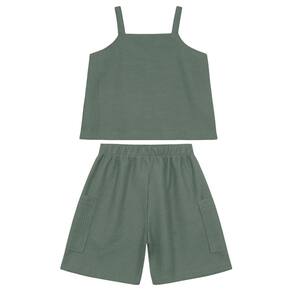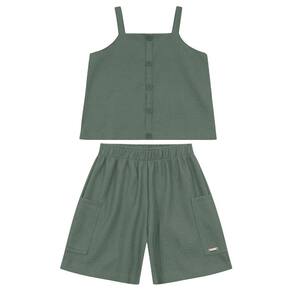 Deixe sua pequena estilosa e confortável com o conjunto infantil da Brandili. A blusa regata é confeccionada em cotton quadrilê texturizado, com abertura frontal por botões e gola quadrada, garantindo um toque especial. O shorts possui cós elástico e bolso lateral, ideal para brincar à vontade. Escolha qualidade e conforto para o dia a dia, combinando com sandálias ou tênis para um look perfeito.