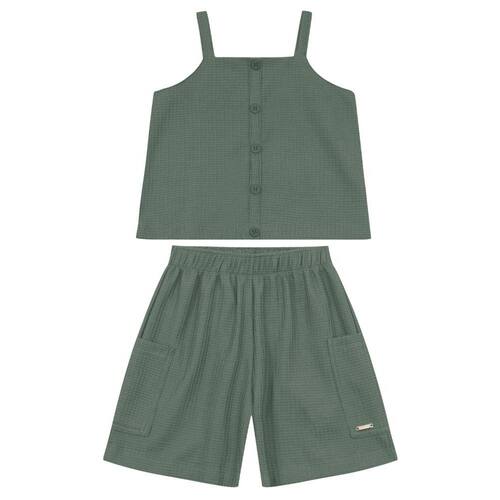 Conjunto infantil menina em moletinho quadrilê Brandili - Verde - 8