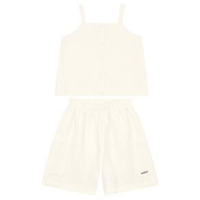 Deixe sua pequena estilosa e confortável com o conjunto infantil da Brandili. A blusa regata é confeccionada em cotton quadrilê texturizado, com abertura frontal por botões e gola quadrada, garantindo um toque especial. O shorts possui cós elástico e bolso lateral, ideal para brincar à vontade. Escolha qualidade e conforto para o dia a dia, combinando com sandálias ou tênis para um look perfeito.