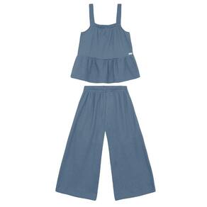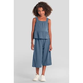 Deixe sua pequena ainda mais estilosa com o conjunto infantil da Mundi. A blusa em tricot tem modelagem regata, gola quadrada e pregas na barra que garantem liberdade de movimento. A calça pantacourt com cós elástico proporciona conforto e praticidade. Com design refinado e acabamento premium, esse look é perfeito para qualquer ocasião. Combine com sandálias e acessórios para um visual encantador e cheio de charme.