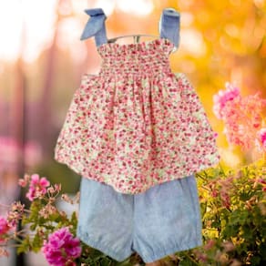 Características do Conjunto Infantil Menina Floral Blusa de Alcinha e Shorts Azul: