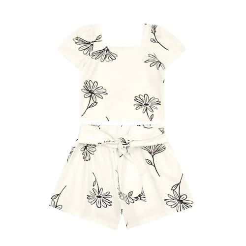Deixe sua pequena ainda mais estilosa com este conjunto infantil da Mundi. A blusa regata em cotton estampado floral possui gola quadrada, perfeita para os dias quentes. O shorts conta com cós elástico e uma amarração decorativa, garantindo conforto e praticidade. Ideal para brincar e se divertir, esse look é uma escolha perfeita para o dia a dia. Combine com sandálias e um chapéu para um visual encantador e cheio de charme.