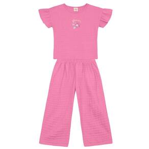 Deixe sua pequena ainda mais estilosa com o conjunto infantil da Brandili, confeccionado em cotton quadriculado que une conforto e charme. A blusa tem gola redonda, mangas curtas com babado e um lindo bordado de flor com paetê, trazendo um toque especial. A calça em modelagem wide leg com cós elástico proporciona liberdade de movimentos. Ideal para compor looks divertidos e cheios de personalidade, esse conjunto é perfeito para o dia a dia das meninas.