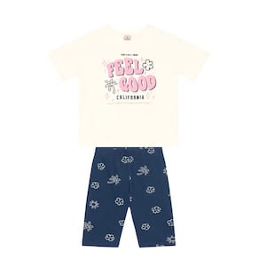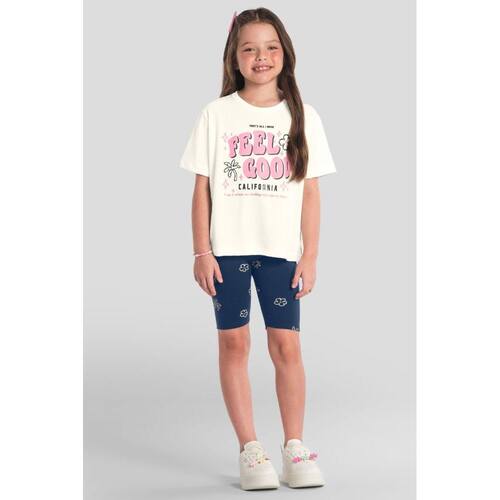 Deixe sua pequena radiante com o conjunto infantil da Brandili. A blusa em meia malha possui gola redonda, mangas curtas e uma estampa tropical em gel que brilha e destaca o visual. A bermuda ciclista em cotton tem cós elástico e estampa delicada, proporcionando conforto e liberdade de movimento. Essa opção charmosa é perfeita para o dia a dia, garantindo estilo e praticidade para as pequenas se divertirem com conforto.