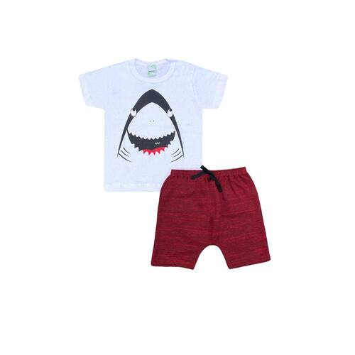 Nosso Conjunto Infantil Menino Camiseta Branca Tubarão com Bermuda Vermelha - Lumagy foi feito especialmente para seu príncipe se divertir com estilo e conforto. Feito com material de altíssima qualidade, a camiseta branca conta com estampa de tubarão, já a bermuda em moletinho vermelha possui listras pretas. O conjunto proporcionará a beleza que seu filho merece.