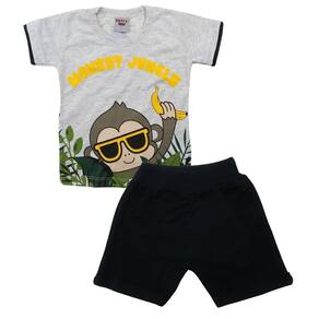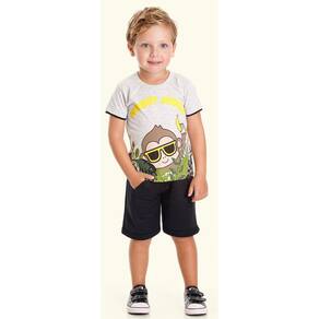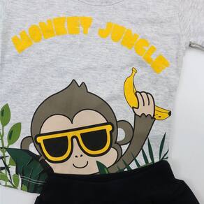 Esse conjunto infantil é perfeito para os meninos que gostam de conforto e estilo. A camiseta de meia malha vem com um divertido macaquinho estampado e um detalhe especial na manga, disponível em dois tecidos de cores: camiseta bege mesclada com bermuda preta, ou camiseta branca com bermuda verde. A bermuda em moletinho conta com bolso, garantindo praticidade e liberdade de movimento, ideal para os pequenos em dias de brincadeira e passeio.