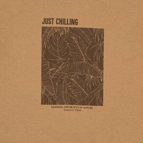 Praticidade para seu menino ficar ainda mais estiloso. Conjunto composto por camiseta meia malha na cor caramelo com gola reforçada e estampa frontal com escrita "relaxando, aproveitando a beleza da natureza, vibrações do verão". Já a bermuda na cor índigo médio jeans leve possuí elastano, bolsos funcionais e cadarços decorativos.