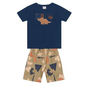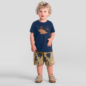 Conjunto infantil menino composto por camiseta confeccionada em malha com estampa bordada de dinossauro, conta com mangas curtas e gola redonda. Já a bermuda é elaborada em moletinho com cós em elástico, garantindo conforto e liberdade de movimento e traz uma estampa divertida de dinossauro. Ideal para brincadeiras e aventuras, esse conjunto une qualidade e estilo, tornando-se uma escolha essencial para os pequenos.